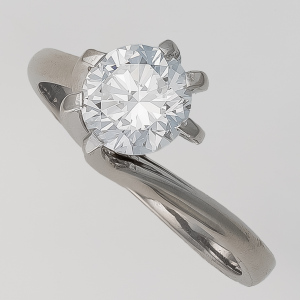Stylizowany pierścionek z diamentem i błękitną emalią
