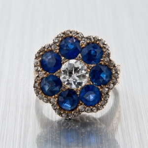 Pierścionek z diamentem, rozetami diamentowymi i szafirami – Belle Époque