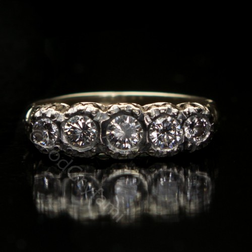 W pięknie cyzelowanej obrączce osadzono pięć idealnie dobranych diamentów.