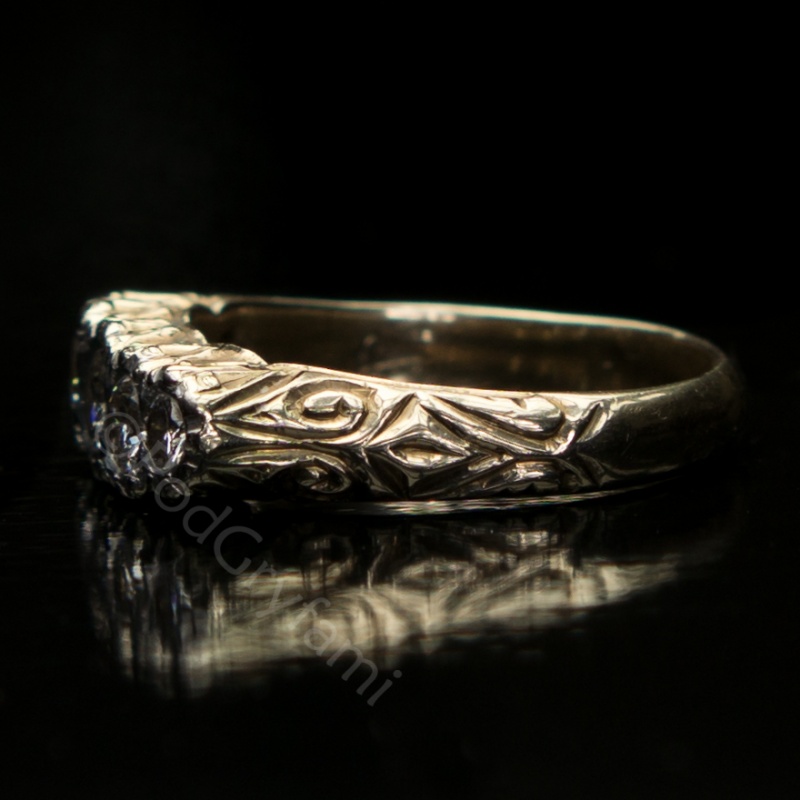 Beautifully chiseled ring with five ideal diamonds set in it.