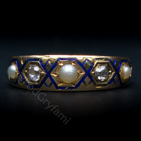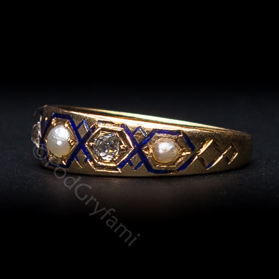 | Notatka: | Obrączka ozdobiona niebieską emalią |