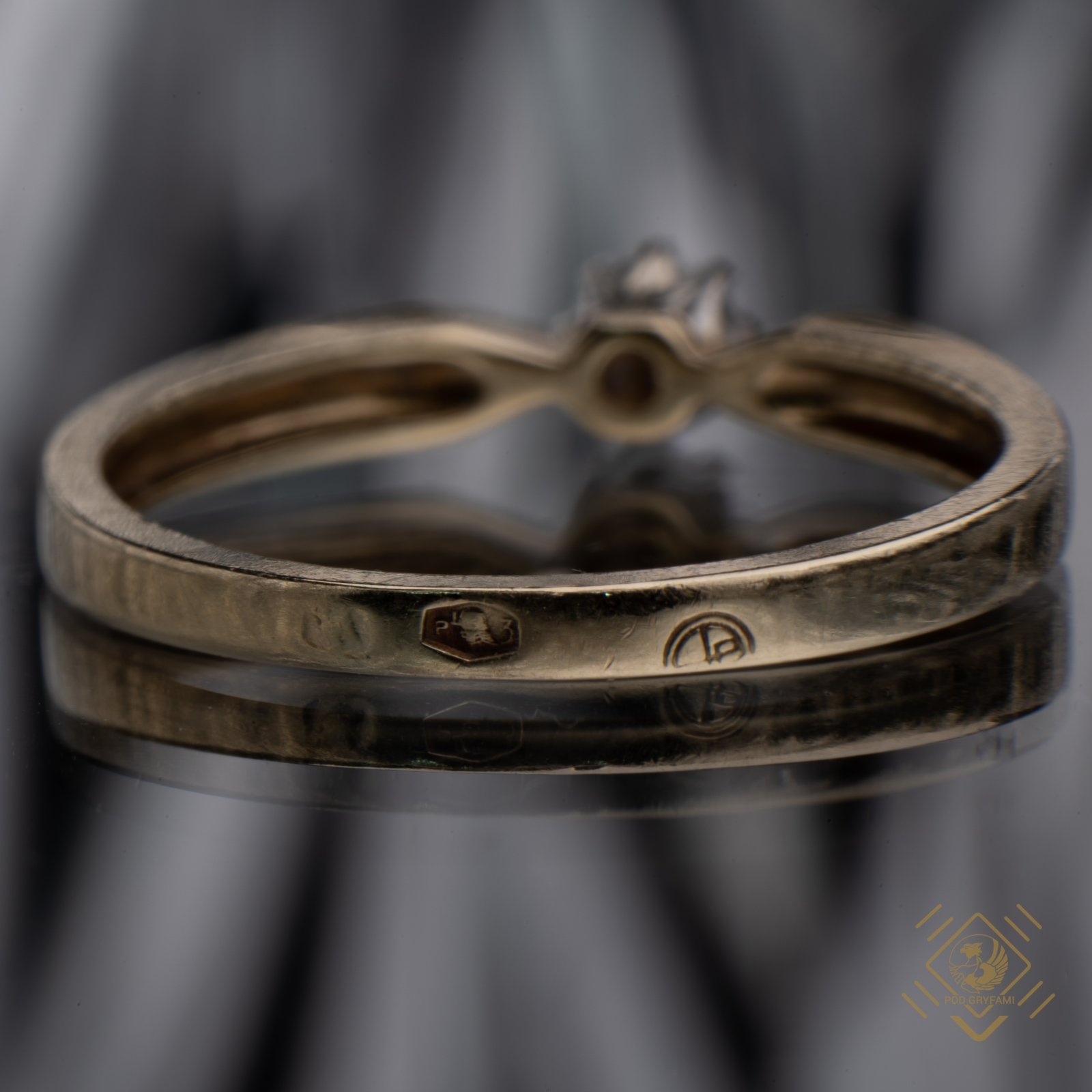 Niewielki diamencik w delikatnej złotej oprawie znakomicie nadający się na podarunek dla młodej damy.