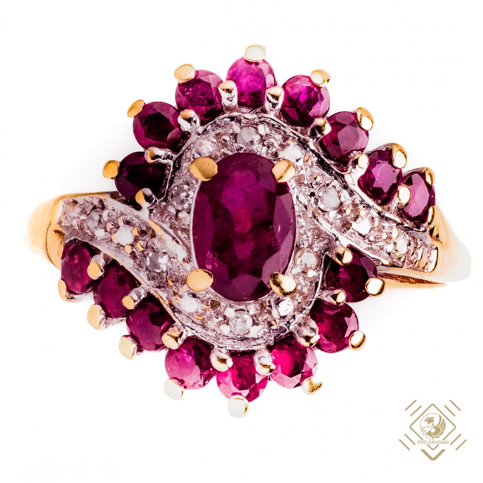 Pierścionek z diamentami i rubinami