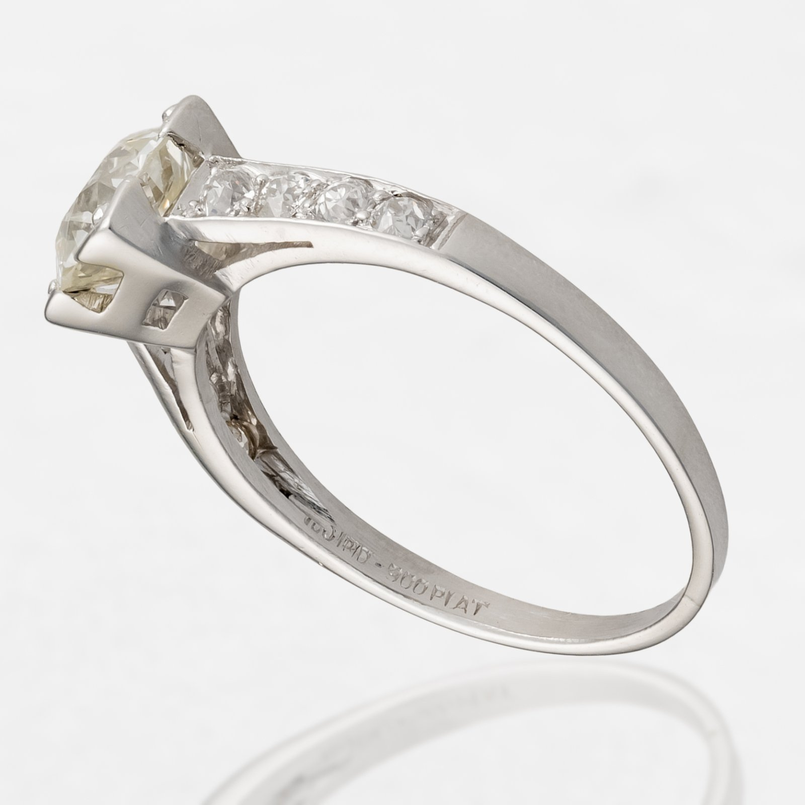 Klasyka pracy w platynie. Prosta konstrukcja, której niezaprzeczalną ozdobą jest centralnie osadzony ponad karatowy diament w historycznym szlifie old european cut. Dodatkowo obrączka kameryzowana diamentami w starych szlifach old mine cut. Ponadczasowe piękno diamentów starych szlifów idealne na każdą okazję.