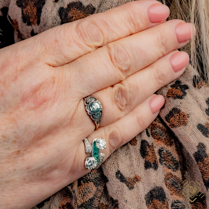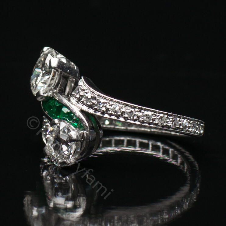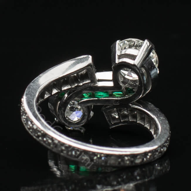 Diamond ring with emeralds
