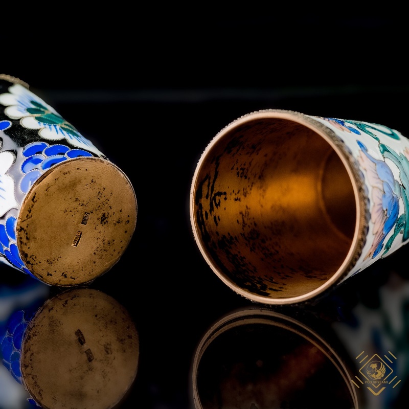 A pair of glasses made of silver, gilded inside, and decorated with enamel. The glasses can be purchased individually.
