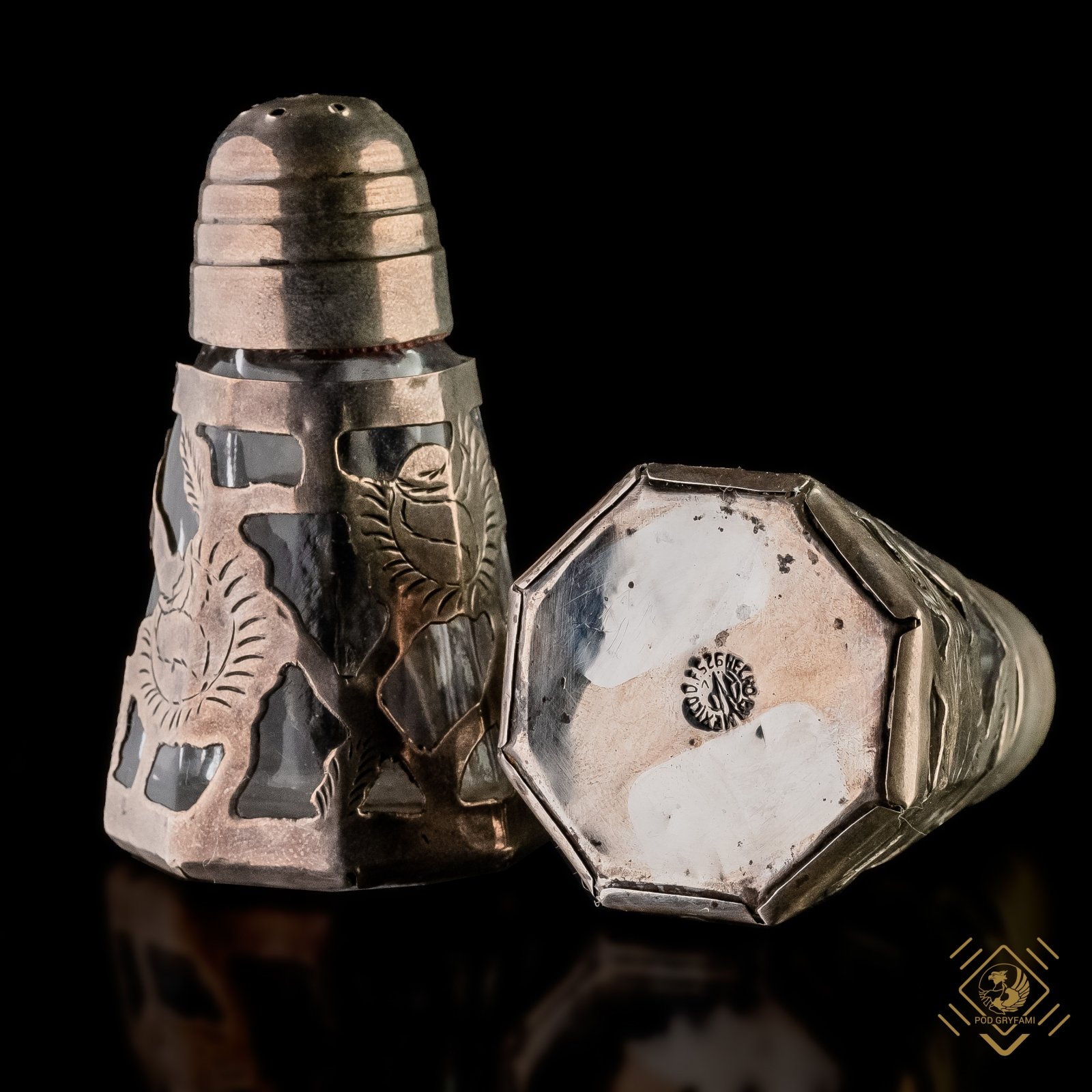 | Notatka: | szklane wkłady, punce Sterling bite na spodzie |