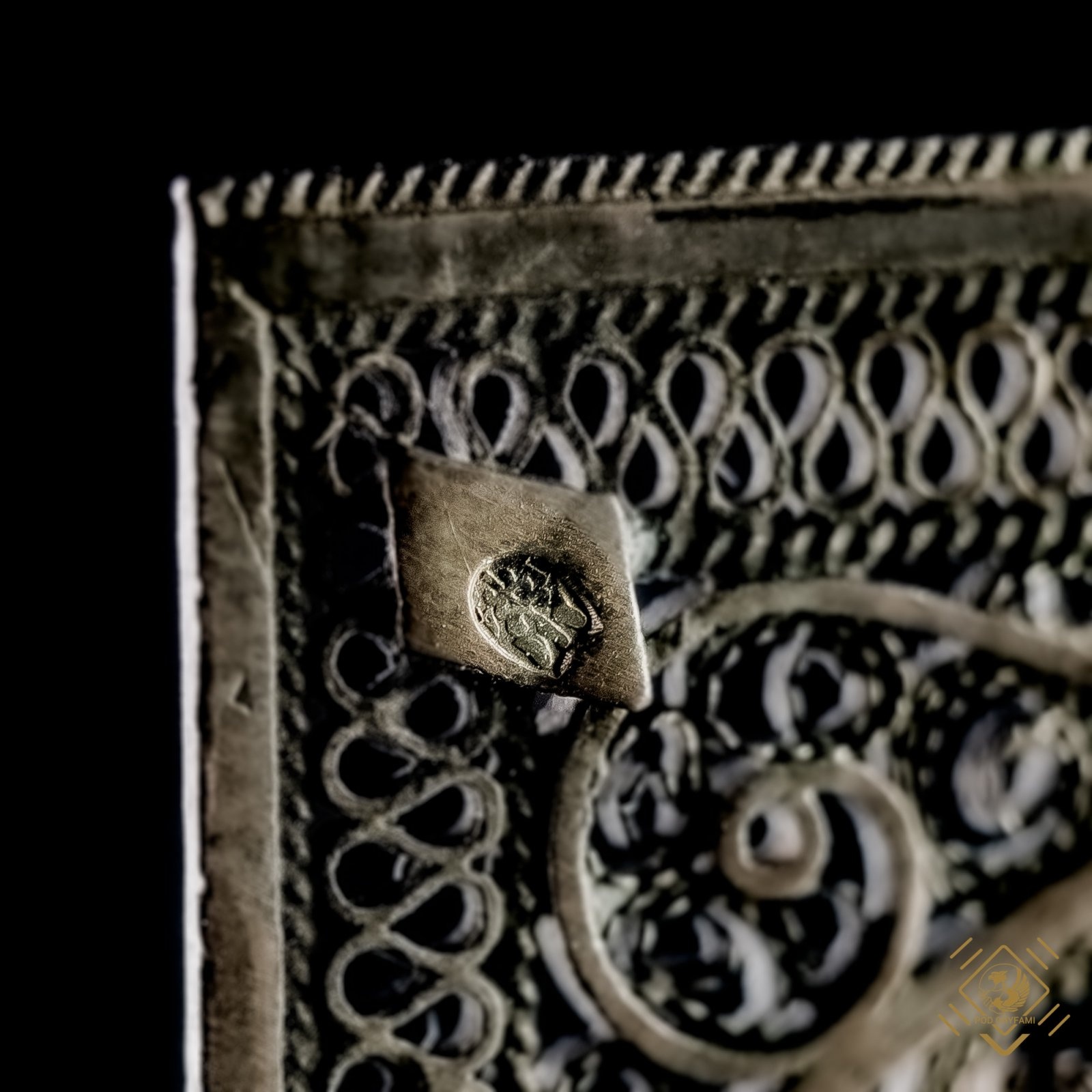 Niewielka szkatułka wykonana w srebrze techniką niezwykle misternego filigranu.