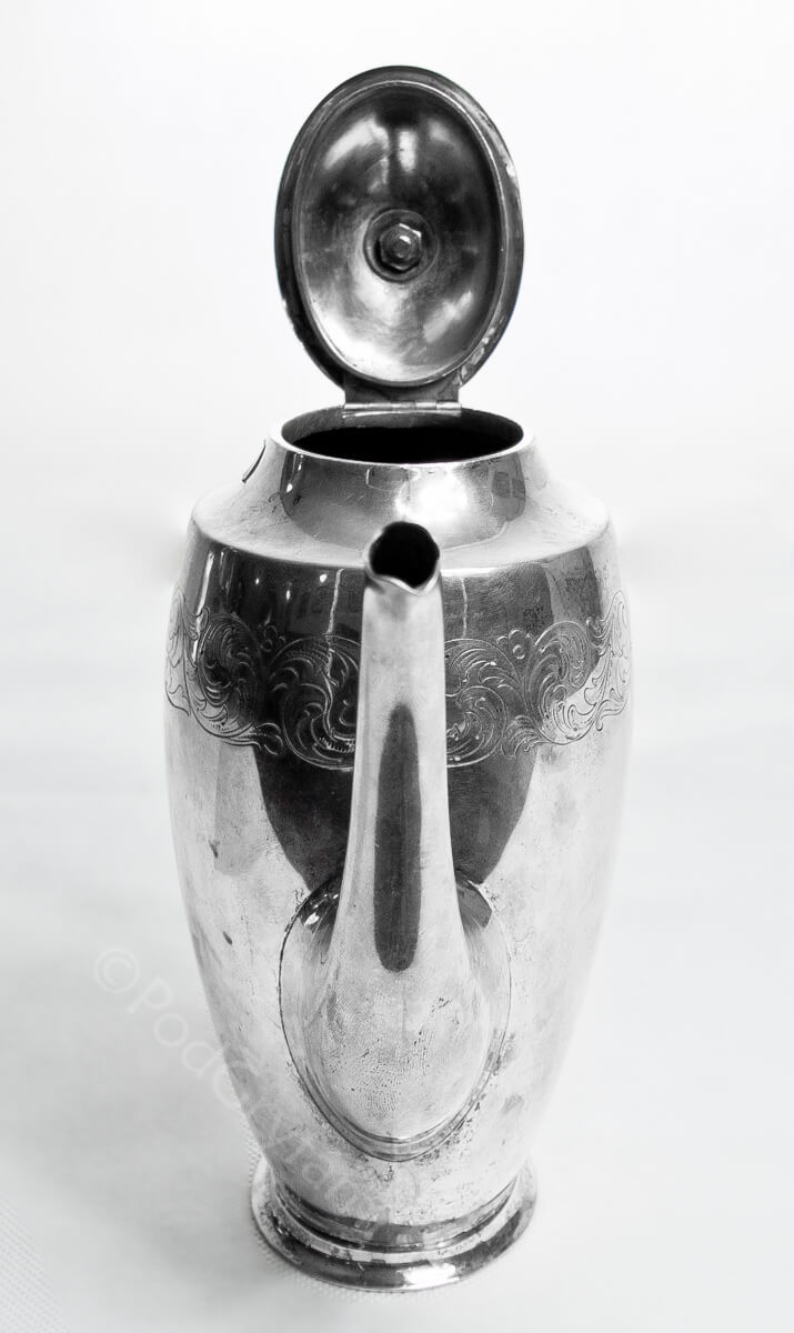 Dzbanek: 1931 rok, Waga 555 g, Długość 11.5 cm, Szerokość 9.5 cm, Wysokość 21 cm