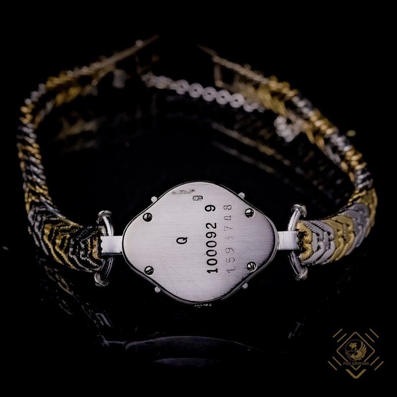 Small, ladies' cocktail wristwatch, whose undoubted characteristic feature, in addition to the fancy shape and diamonds surrounding the dial, is a quartz mechanism. In this way, the watch's busy owner does not have to remember about daily winding.