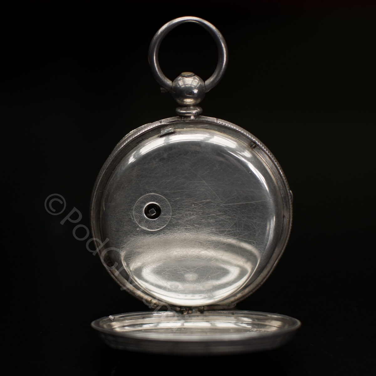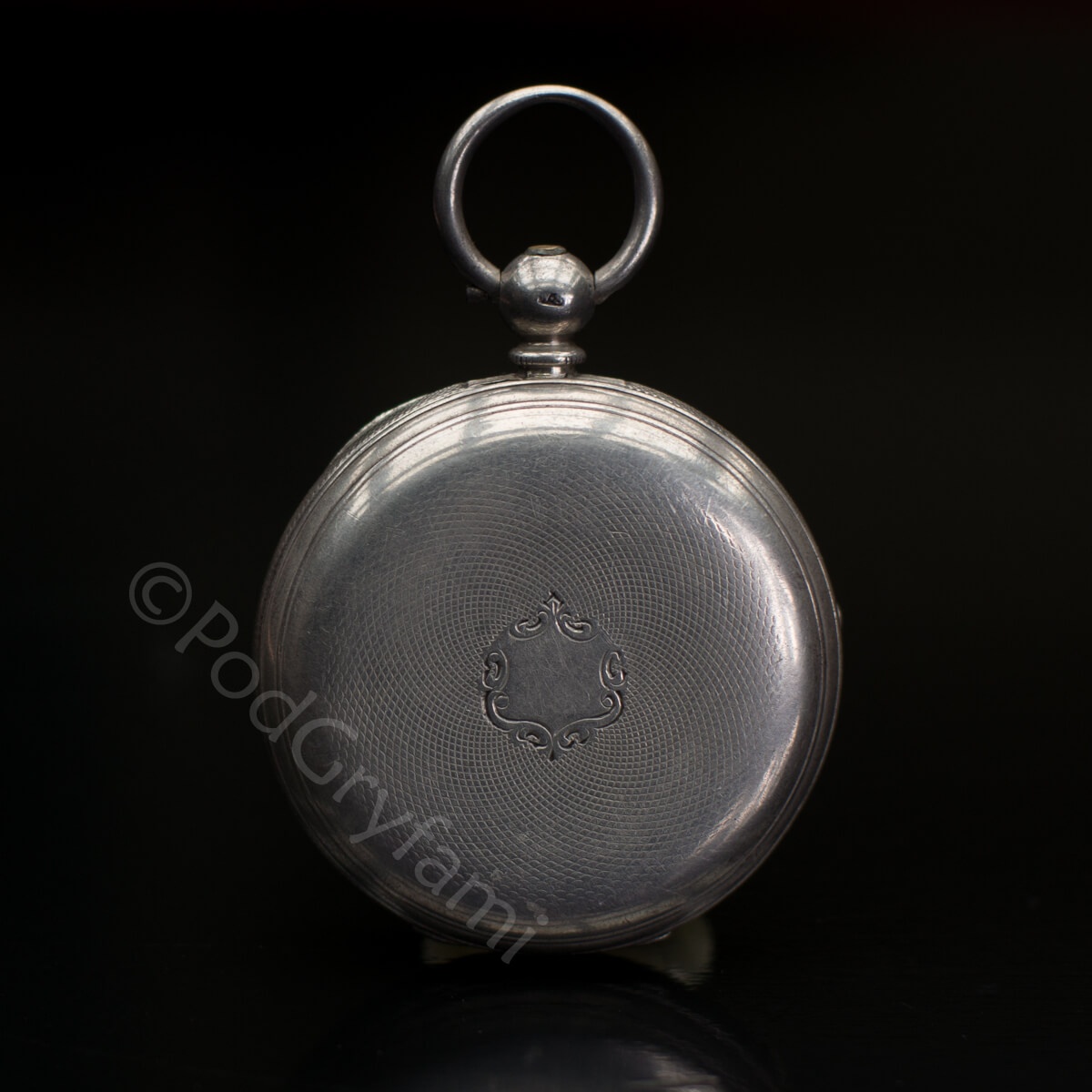 Srebrna z srebrnymi rzymskimi promieniowymi cyframi i małym sekundnikiem