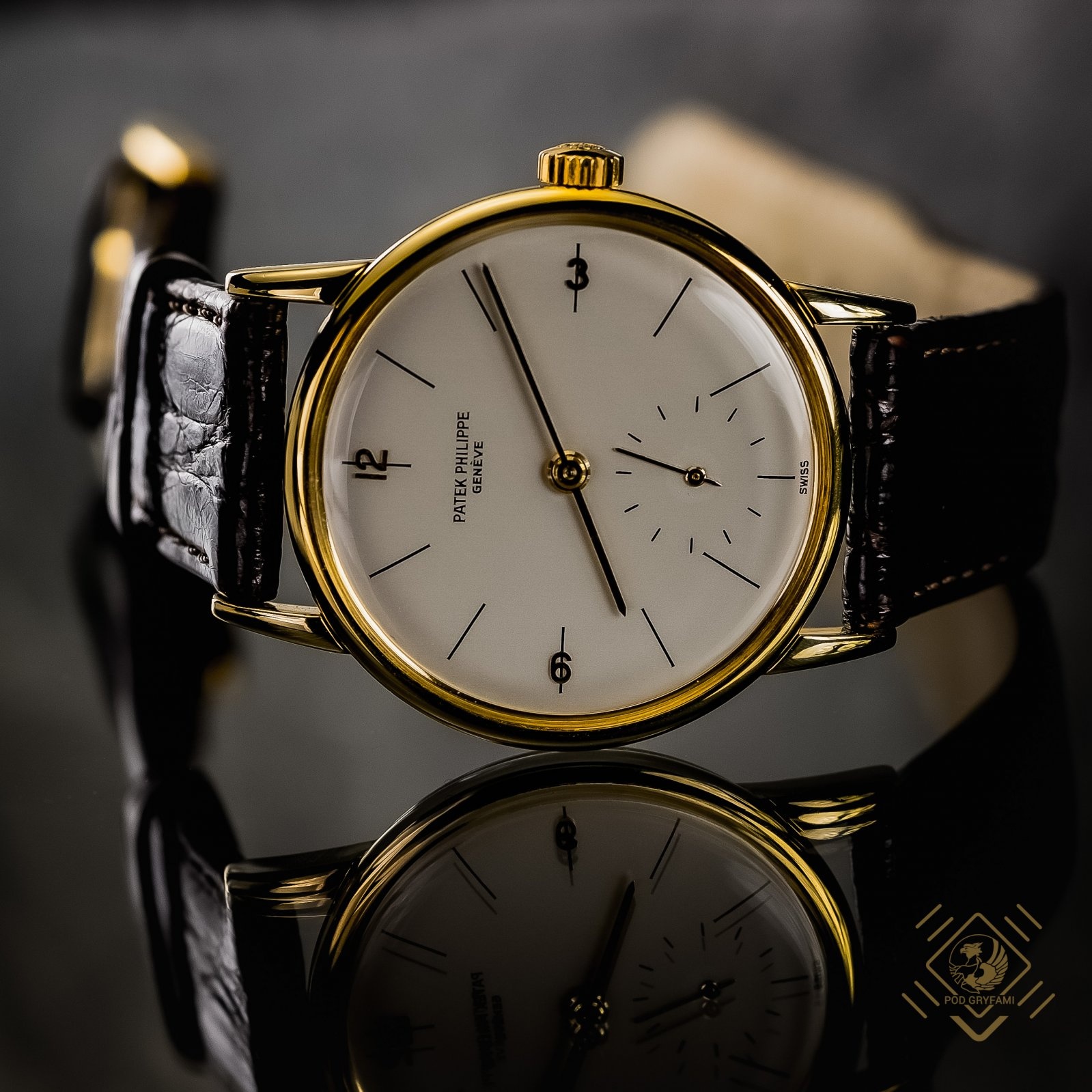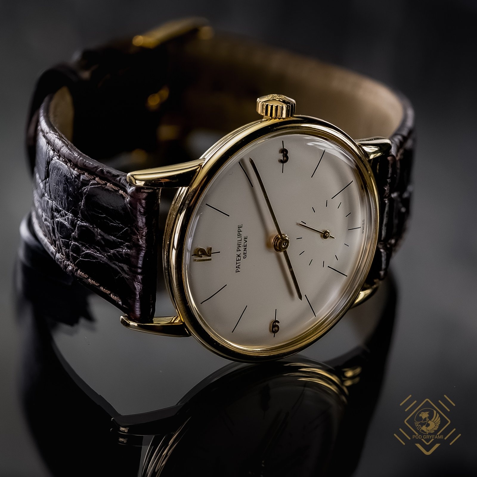 Jeden z najelegantszych klasycznych modeli zegarków Patka Philippa. Wykonany w latach 50-tych XX wieku ( około 1954 roku ) w 18 karatowym złocie. Tarcza w kolorze przygaszonej bieli z prostymi złotymi wskazówkami. W dolnej części tarczy umieszczono niewielką tarczę sekundnika. Model posiada naciąg szwajcarski mechaniczny. Sygnowany na cyferblacie Patek Philippe Geneve.